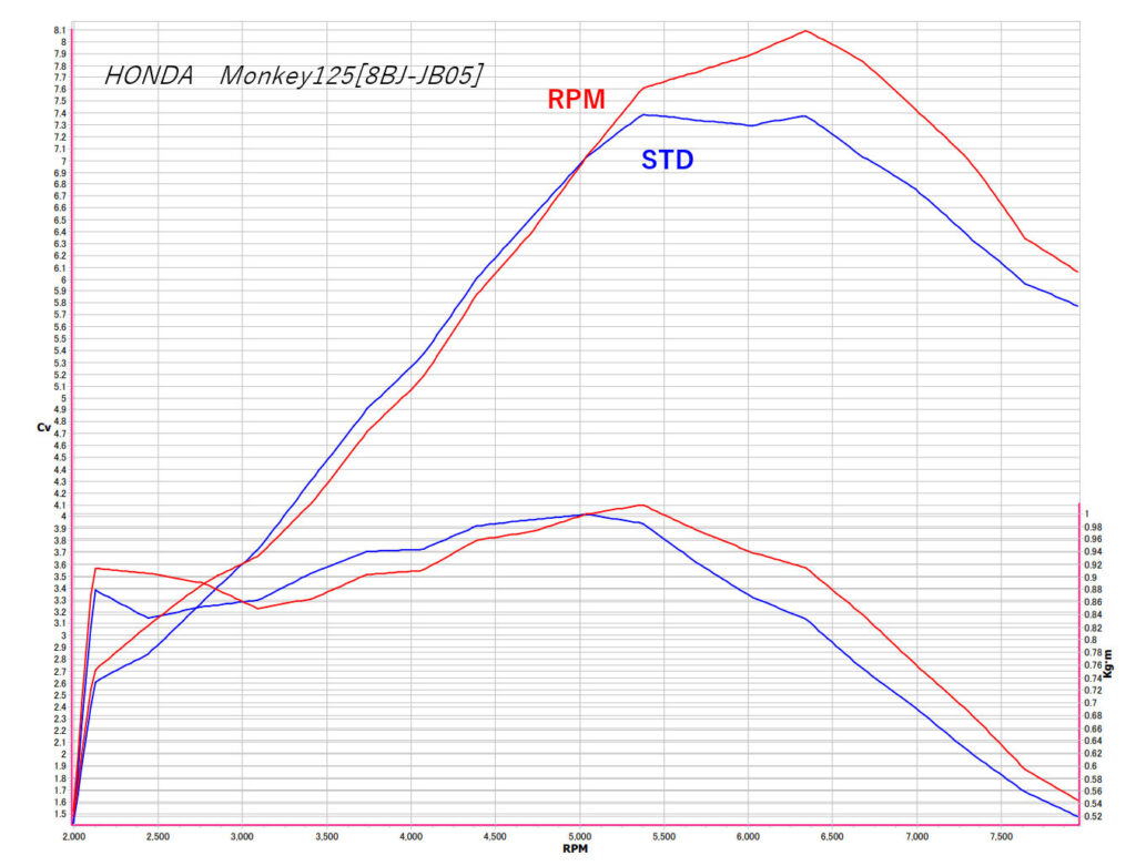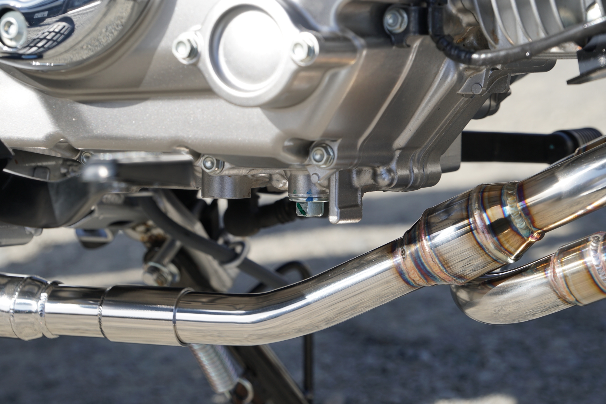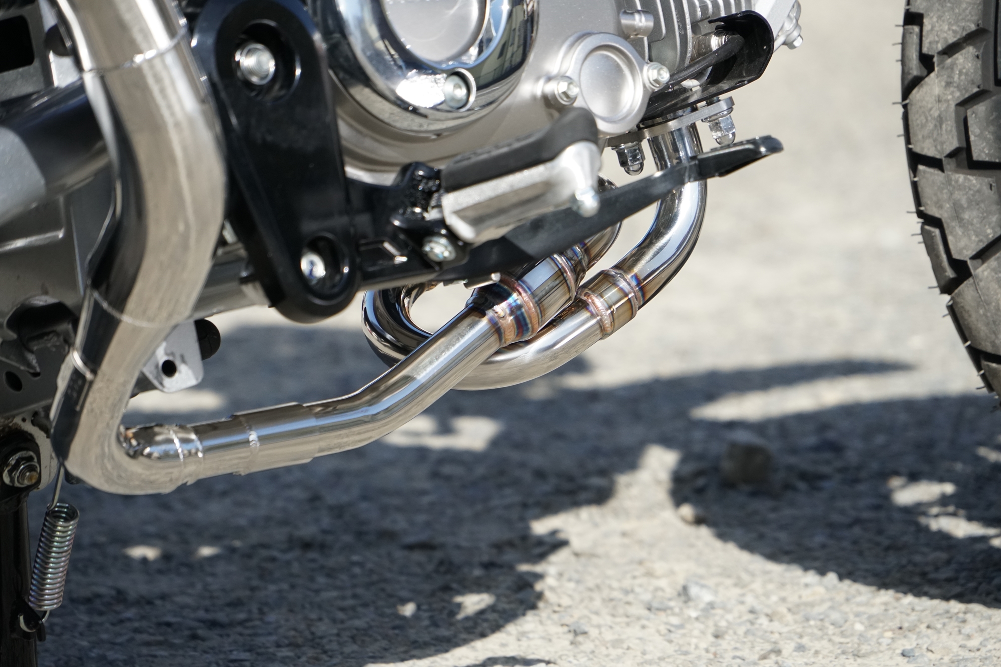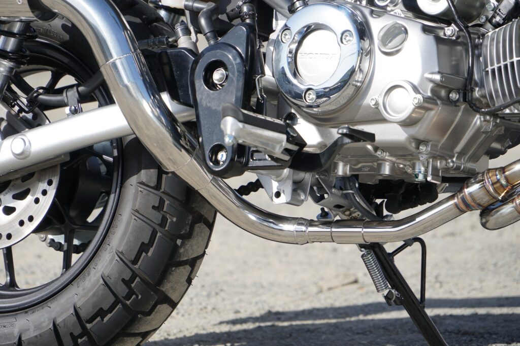 Monkey125専用として開発された本エキゾーストパイプは、単なるレイアウト変更や外観重視の設計ではありません。エンジンが発する一つひとつの排気脈動を、いかに無駄なく、そして自然に後方へ導くか――その一点に徹底的に向き合い、設計を積み重ねてきました。